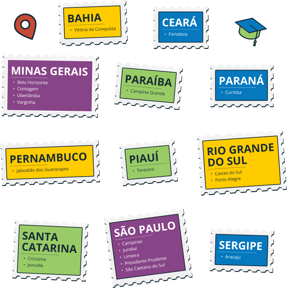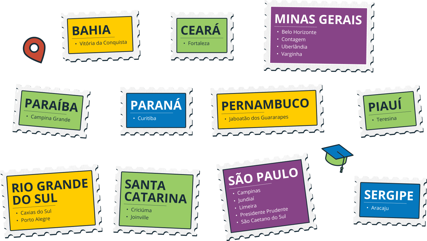 Vagas na Bahia, Ceará, Minas Gerais, Paraíba, Paraná, Pernambuco, Piauí, Rio Grande do Sul, Santa Catarina, São Paulo e Sergipe.